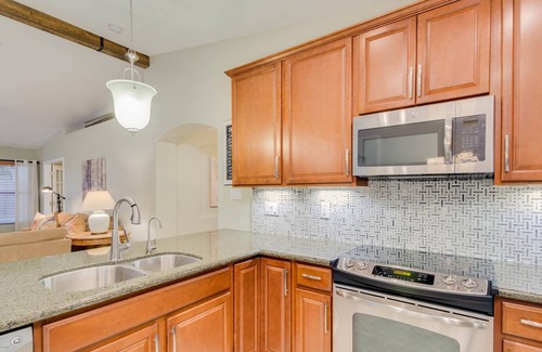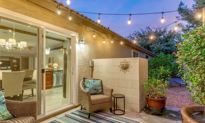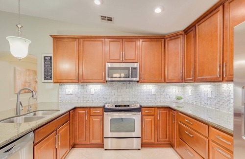 Absolutely stunning single level, 3 bedroom plus den with sofa bed, 2 bath, private pool & hot tub. Back & side yard with view facing green belt (no rear neighbors)! Pool toys, comfy lawn chairs, sun umbrellas all for use!