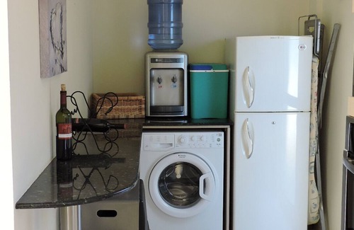 The utility area has a washing machine, an iron and ironing board, a fridge with freezer and a water dispenser. There is also gas heating for cozy autumn and spring evenings.