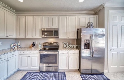 Everything you need to enjoy a tropical vacation is right here! This stunning 1800 square ft. townhome built in 2015 is professionally decorated in coastal décor and equipped with numerous upgrades and luxury items. Enjoy the lakefront view on your front lanai in the morning, spend the afternoon at the resort pool, then enjoy a restful evening on your back balcony overlooking the semi-private pool and gathering area right in your backyard. Make new friends or do your own thing. The unit is perfect for couples, families, and work-from-home travelers alike. This is a private, gated community with security. If you are looking for a beautiful tropical getaway in Southwest Florida this is it!