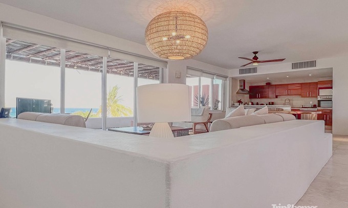 This exceptional beach villa in Puerta Cortés, the premier resort in La Paz, boasts a beautiful view of the sea.