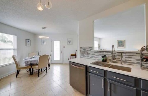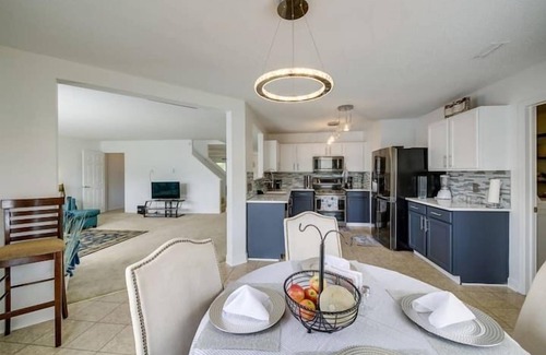 This 4-bedroom, 2.5-bathroom vacation rental home offers a spacious and comfortable retreat for your family getaway. With a California King Bed in the bedroom suite, two Queen Beds, and two Twin Beds in the other bedrooms, as well as additional sleeper sofas in the loft and living room, it can comfortably accommodate a larger group. The home is thoughtfully equipped with three distinct living areas, each featuring Smart TVs, providing plenty of space for relaxation and entertainment. A dedicated workstation is available for those who need to stay connected, and a cozy patio with outdoor seating allows you to unwind in the evenings. The well-equipped kitchen includes modern amenities like a stove, refrigerator, microwave, dishwasher, and a variety of cooking essentials, making it easy to prepare meals during your stay. With ceiling fans, free WiFi, central air conditioning and heating, and a range of other conveniences like a washer and dryer, iron and ironing board, and baby changing table, this vacation rental home ensures a comfortable and enjoyable stay.
