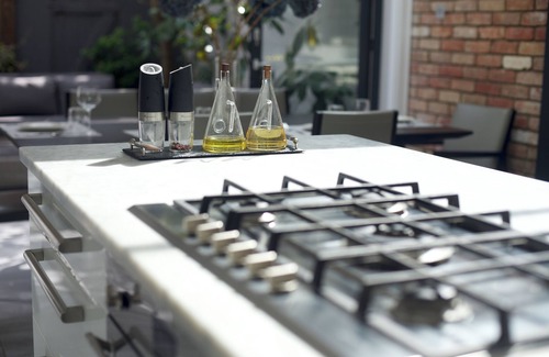 The dining table will have marks if you put hot plates on it. Please use the coasters, placemats, and cork underlays for any hot food. That said, the kitchen counter is heatproof, so seasoned chefs won't have issues making a feast.