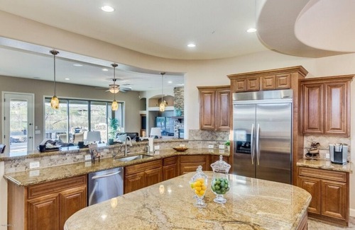 Beautiful 4 plus Bedroom Estrella Home on the Golf Course has 5 Bedrooms , 3 Bathrooms, and max occupancy of 10 people. The minimum rental for this property is 1 nights, but this can change depending on the season you plan on staying. Previous guests have given good rated it, and VRBO labeled it a top-rated House because of the excellent services rendered by the owner or manager of this House, and has consistently provided great experiences for their guests. Most families or guests that use it recommend it to their friends and some of them are repeat guests. House has a friendly neighborhood, and the Estrella Mountain Ranch has interesting places to visit. If you want to learn more about the House in Estrella Mountain Ranch, such as places to visit and things to do nearby, you can check below to learn more.