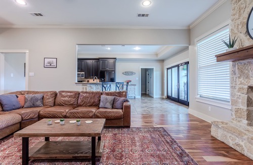 This spacious, clean, beautiful home is the perfect oasis for anyone looking to escape, restoring body, mind & soul! Take a dip in our supersized in ground pool, complete with lounging chairs & drink tables or soak up the incredible Texas night sky in the warm glow of the fire pit far enough from the city lights, you can actually see the stars! If you need a gathering place, look no further... you've found the one. Space for the entire family, friends, co-workers- you name it, this is the retreat you've been looking for. Large, functional kitchen with ample cabinet & seating space, open concept living area with extremely comfortable couch & large tv, SO MANY SLEEPING OPTIONS! We can't hype this incredible property enough, so please let our reviews do the talking!