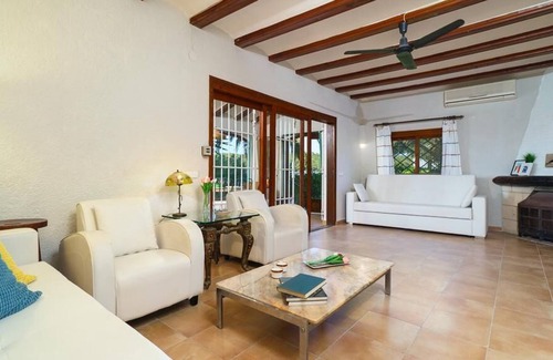 Beautiful and romantic villa with private pool in Javea, Costa Blanca, Spain for 6 persons. The house is situated in a residential beach area, close to restaurants and bars and a tennis court and at 4 km from El Arenal, Javea beach. The house has 3 bedrooms and 2 bathrooms. The accommodation offers privacy, a beautiful lawned garden with trees and a beautiful pool. Its comfort and the vicinity of the beach, places to shop, sports activities, places to go out, sights and culture make this a fine villa to spend your holidays in Spain with family or friends.