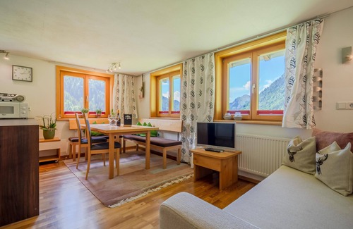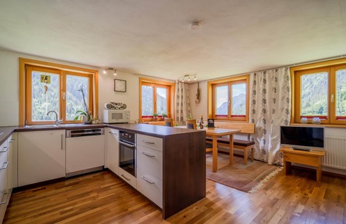 This lovely apartment is located on the outskirts of Klösterle, in a sunny spot close to the famous Arlberg. It is spacious and features a comfortable living room with fully equipped kitchen that also serves as a dining room. This is the place to socialise after an active day in the beautiful region. Thanks to the presence of a private entrance, your privacy is guaranteed at all times. Come along soon!