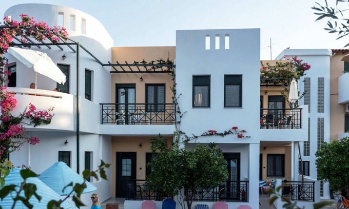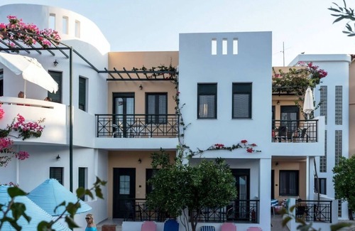 Beautiful, cosy aparthotel "Kastro Studios & Apartments", 3 storeys, built in 2001, renovated in 2012. 31 apartments in the residence. In the district of Myrtos 16 km from the centre of Ierapetra, in a quiet, sunny position, 500 m from the sea, 500 m from the beach. For shared use: large, well-kept garden 2'000 m2 with flowers and trees, swimming pool angular (124 m2, depth 70 - 220 cm, seasonal availability: 01.Apr.-31.Oct.). Children's pool. In the house: reception, bar, lounge with TV, WiFi, hydro massage bath. Linen change 2 times per week. Towel change 2 times per week. Room cleaning 2 times per week. Parking at the house. Grocery, supermarket 400 m, restaurant 500 m, bakery 400 m, café 500 m, sandy beach "Myrtos" 500 m. Nearby attractions: Venetian Fortress Kales 15 km, Napoleon's House 15 km, Archaeological Collection of Ierapetra 16 km. Please note: car recommended. Reception open 09:00-21:00 hrs. Baby equipment on request (included). Groups of teenagers on request only. Please note: the photograph shows a typical example. There are more similar properties for rent in this same residence.
