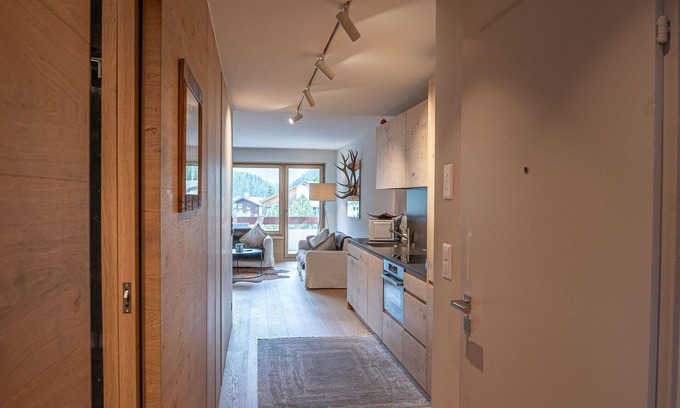The resort is located in the residential district, 800 meters from the lake. Recreational facilities in the vicinity include a surf school (3 km), tennis courts (2.4 km), minigolf (2.5 km), cable car (2.4 km), mountain railway (3 km), ski lift (2.4 km), ski rental (210 m), ski bus stop (150 m), ski school (1.4 km), sled run (8 km), cross-country ski track (500 m), ice rink (2.5 km), and a children's playground (500 m).