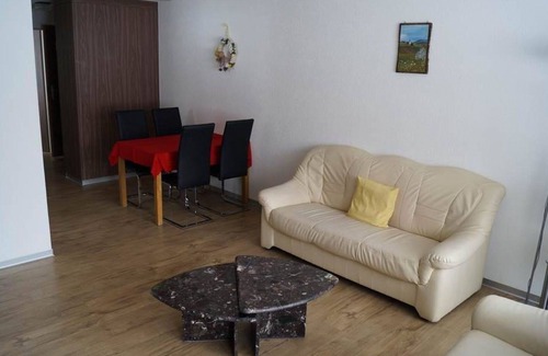 You will be staying in a 2 1/2-room apartment that measures 55 square meters and is located on the 2nd floor. The apartment consists of 1 bedroom, 1 bed-sitting room with 2 folding beds, a kitchen without a dishwasher, a shower/WC, and a south-facing balcony.