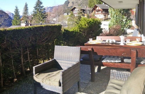 2-room apartment 53 m2, on the ground floor, south facing position. Bright, cosy furnishings: living/dining room with cable TV, flat screen and DVD collection available. Exit to the terrace, south facing position. 1 room with 1 bed (160 cm, length 200 cm), 1 x 2 bunk beds (90 cm, length 190 cm). (3 hot plates, oven, dishwasher, microwave, electric coffee machine, Capsules for coffee machine (Nespresso) extra, raclette grill, fondue Set (cheese)). Bath/WC. Parquet floors. Terrace 15 m2, south facing position. Terrace furniture. Marvellous view of the mountains and Eiger. Facilities: washing machine, dryer, hair dryer. Internet (WiFi, free). Reserved parking space n 42D, garage space n 42D. Please note: suitable for families. Non-smokers only. Private entrance, fire extinguisher.