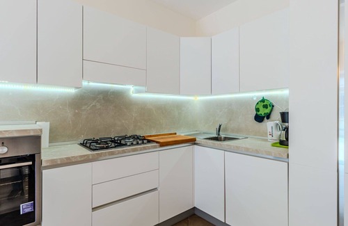 The apartment is located on the ground floor and has recently undergone a full renovation. Gas heating is available, but only from October 15th to April 30th. Please note that this is a non-smoking property, and a maximum of one pet or dog is allowed. For your safety, smoke alarms and a fire extinguisher are provided. The maximum capacity of the apartment is four guests, with one double bedroom and one double sofabed in the living/sleeping room, ensuring ample space for your group or family. "Just an example, this sentence is retained in the output."