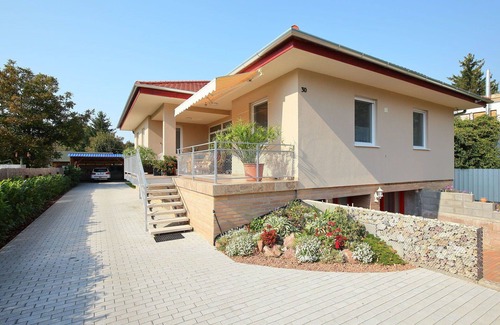 The Beige is a modern, beautiful house built in 2016, located in the resort town of Balatonszemes, just 10 km from Balatonboglár and Balatonfüred, Hungary. This vacation rental offers a shared garden area of 550 m2 and amenities such as a yard, Internet WiFi, and parking. It's the perfect choice for your holiday rental experience.