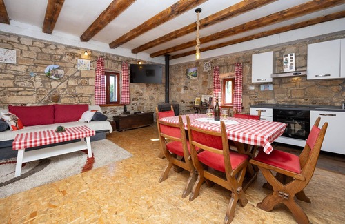 At Agroturism Podastrana in Hrvace, an authentic and cosy holiday apartment awaits you, ideal for nature lovers and those seeking peace and quiet. The apartment offers a fully equipped kitchen, an inviting seating area and a fireplace that creates a cosy atmosphere on cooler evenings. On the terrace or in the courtyard, you can enjoy the magnificent view of the surrounding mountains and relax in the spacious garden - an ideal place to unwind.