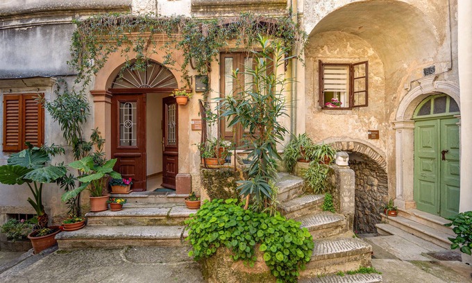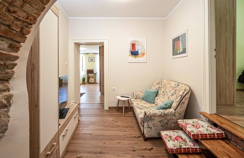 The attractively renovated apartment welcomes you to the beautiful historic town of Moscenice, which is situated on a hill and offers a wonderful view of the blue sea and Kvarner Bay. Make yourself at home in the bright rooms, some elements still bear witness to the long history of the house. Enjoy meals together without the hustle and bustle in the kitchen and spend cozy evenings in the apartment after your excursions.
