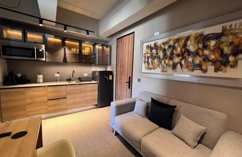 Cozy apartment with a beautiful design and a great view of the city, perfect for rest and relax. Located in a business exclusive zone. The building offers excellent common areas, such as pool, coworking spaces, gym, sauna, coffee. (Some areas may need reservation, ask the host).