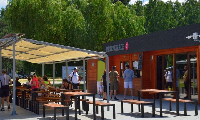 Kemp Stříbrný rybník is a child-friendly holiday village offering a vacation rental experience. It boasts 25 houses within the resort, nestled in the district of Malšova Lhota, just 5 km from the center of Hradec Králové, along a wooded area and overlooking a lake. The property provides amenities such as a yard, Internet WiFi, parking, and an installment plan.