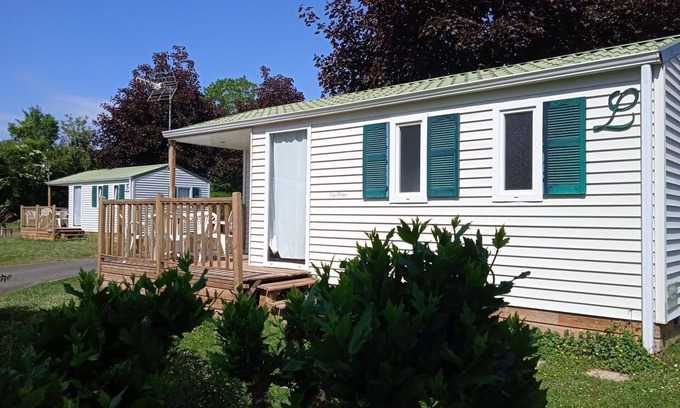 This 3-room mobile home spans an area of 25 square meters and features practical furnishings. The living/sleeping room is equipped with one sleeping facility and a flat-screen TV. Additionally, there is one room with a French bed measuring 140 cm wide and 190 cm long, and another room with two beds, each 80 cm wide and 190 cm long.