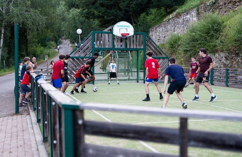 The holiday village is located just 50 meters from the edge of the forest and 50 meters from the lake, providing easy access to outdoor activities. The resort features a terraced garden, an angular swimming pool (130 m2, seasonal availability: 15.Jun. - 15.Sep. pool opening hours: 10:00-19:00), a children's pool, slide, tennis court, basketball court, boccia court, volleyball court, and a children's playground. Additionally, there is a bathing lake, Lac de Sarrans, situated just 50 meters away.