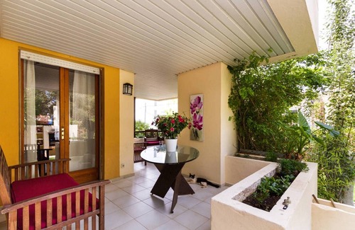 Large house at street level, approximately 120m2 with 3 bedrooms, fully equipped, air conditioning, very bright. Large terrace and garden with lawn, and private barbecue. Availability of underground parking. Its large garden is ideal for putting bicycles or water toys. It is just 5 minutes from the beach and next to several beach bars. In the same block there is a bicycle center for bicycle lovers.