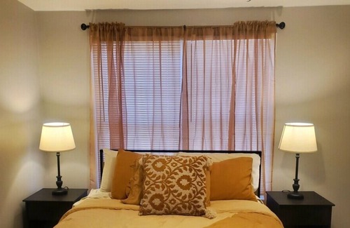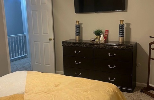 A fully furnished 3 bedroom house and full finished basement. That includes washer and dryer as well as dishwasher. TVs in every room including basement with wifi. Plenty outdoor space. On the outskirts
