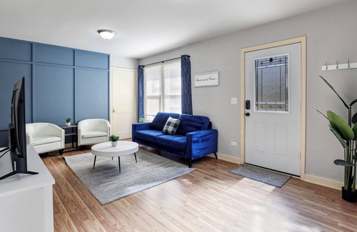 This newly renovated 3 bedroom 1 bath home with a large loft in Barrington can comfortably sleep 8 adults and 2 children. This home has a nice living space, a master suite with a private balcony and a full basement. The home is conveniently located near Northwest Highway and Hough Street, making it easily accessible to highways that lead to wherever you need to go. This home has a fully stocked kitchen making it a breeze to cook and entertain.
