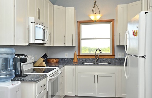 Twin Shores is a reverse floor plan home so you will enjoy the ocean view from the living area. There is comfortable furniture, a 65" flat-screen TV with surround sound, DVD, Netflix, and extensive movie library. We have an antenna that gets over 20 channels. The sun deck on this level has comfortable deck furniture, built in seating, a gas grill and picnic table. The free-standing gas fireplace is not available. Our updated kitchen has everything you need to cook for your family. (blender, mini food processor, rice cooker, slow cooker, hand mixer, and full size electric griddle, keurig, and automatic drip coffee maker) Steps from the kitchen is the spacious screened in porch where you can enjoy the seven person hot tub! Through the door on the porch, go up the stairs to a large rooftop deck with amazing ocean views and star gazing at night. Twin Shores is dog friendly.