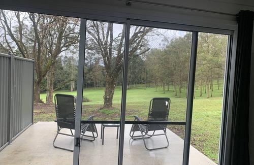 Relax in your own private open plan cabin with full kitchen, private bathroom/laundry, full kitchen with 4 hotplate stove, lounge/dining area, undercover parking private outdoor patio'