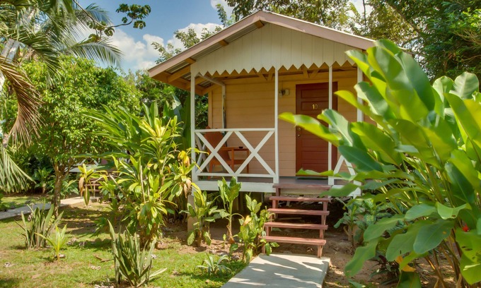 Our beautiful wooden cabanas are equipped with one queen bed or two double beds, private verandah with hammock, flat screen TV, free wi-fi , AC, ensuite private bathroom (hot and cold water), shower essentials, safety box, and refrigerator.