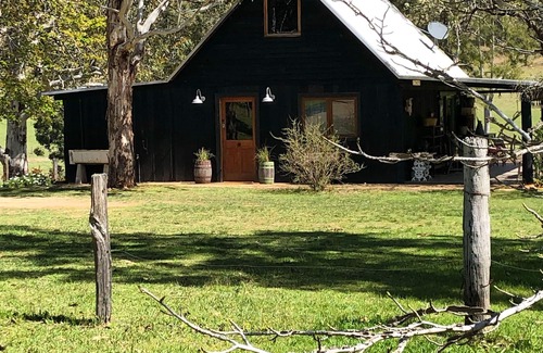 Beautiful, large timber cabin, fully self contained for a couple, overlooking rural paddocks and the Wollombi Brook. Comfortable interiors with picture windows from every room, luxury stone floors, generous bathroom with deep bath and seperate shower. All on one level. (Upstairs has been closed off). Wood combustion fire for the cooler months and air conditioning for the warmer months. Plenty of outdoor space to relax and watch the cows wander past. On a clear night, light the fire pit and name the stars.