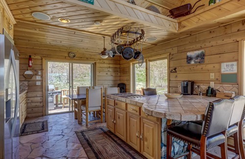 The home has 4 bedrooms, 3.5 bathrooms, movie room (which works as additional sleeping on oversized bean bags for children), 4200/sqft living area and 2000/s of decking around 2 floors, complete game room upstairs with foosball, pool table, ping pong, and poker table for all to enjoy.  Ths property is three stories. The bottom floor has mostly sleeping arrangements and a movie room, plus a laundry room. The middle floor has the master bedroom, family room, and kitchen. Plus outdoor decks that can seat many people. The third-floor is a bedroom with a queen bed, bathroom, and the large gaming room, which you can see in the pictures. The home has roughly 3 bedrooms designed for couples. The rest of the beds and spaces have singles/children/etc. The exterior has roughly half an acre additional for parking. Plus the Large fire pit overlooking the lake is nice and cozy. The lots are located on 2+ acres away from other cabins and it backs to a national forest. Right behind the cabin has nearly thousands of miles of trails. You can hike them, bike, or off-road vehicle. But don’t trust me, Google earth, the property and you’ll see. If you are wanting to bring a fifth wheel, trailer, or simply tow something, the proper will fit it, but the driveway is very steep. We will send out photos to assist should you need them prior to booking. Plus, we have an extensive amount of kitchen amenities and fire wood included.Too much to list, but feel free to contact the Owner for additional questions. Qft