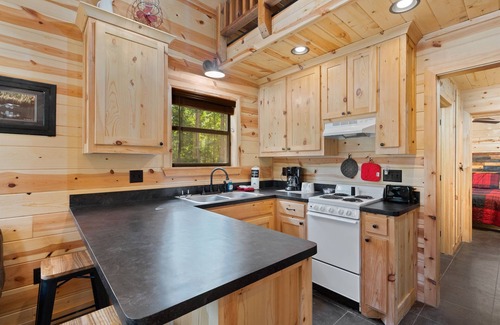 The Cabins at Holly Creek are nestled on 20 quiet acres on the outskirts of Broken Bow OK. Lonestar is a 1 bedroom cabin with loft that sleeps 6 comfortably. The cabin is equipped with all you need to make your stay complete. A fire pit and grill are located just outside the cabin so you can enjoy burgers and smores! Relax and read a book or sit on the front porch and enjoy nature when you aren't out exploring!