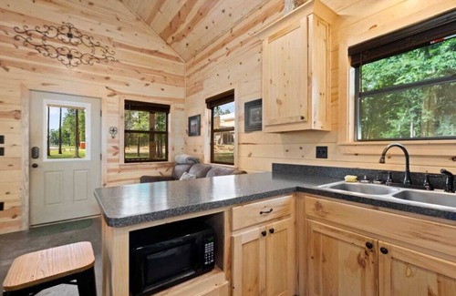 The Cabins at Holly Creek are nestled on 20 quiet acres on the outskirts of Broken Bow OK. Longhorn is a 1 bedroom cabin with loft that sleeps 6 comfortably. The cabin is equipped with all you need to make your stay complete. A fire pit and grill are located just outside the cabin so you can enjoy burgers and smores! Relax and read a book or sit on the front porch and enjoy nature when you aren't out exploring!