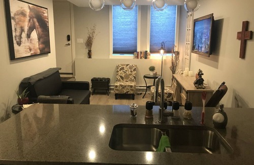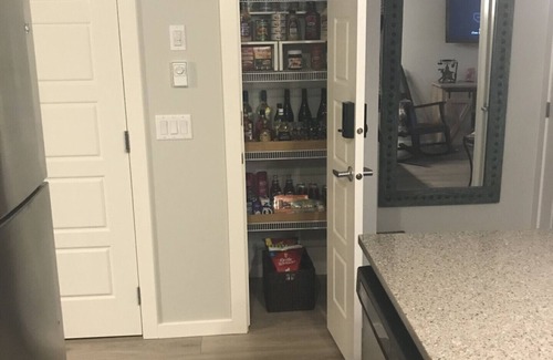 This condo is fully equipped with everything, including adjustable bed and Temperpedic mattress. Large TV in bedroom and another in living-room. Fully stocked kitchen for at home cooking.