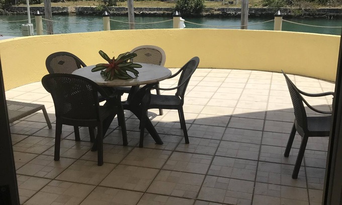 2 bedroom 2 bath with patio, living room, dining area and fully appointed kitchen. newly renovated interior with flat screen tvs in bedrooms and living room. laundry facilities on site, car rentals on site. taxi service to and from airport available, bus service to supermarket and beach also available. resort offers scuba diving classes, snorkeling, fishing, bicycles and more. restaurant on site, 2 swimming pools, exercise facilities, security, friendly and helpful staff,and on resort activities. perfect for a relaxing and peaceful getaway. strawmarket nearby and don't forget the Wednesday night fish fry.