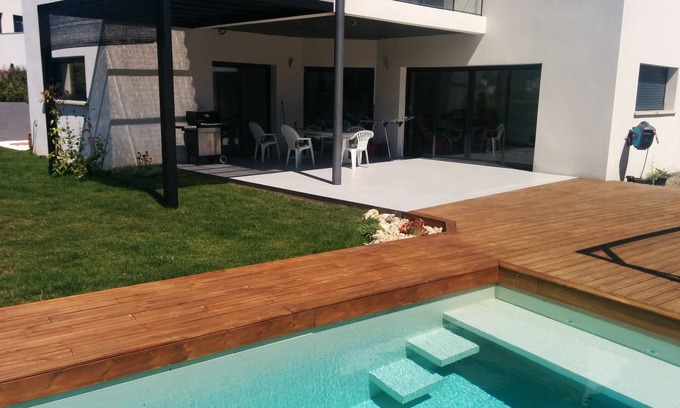 Beautiful contemporary house for rent is located in Le Cres. Beautiful contemporary house for rent provides accommodation, featuring Entertainment, Air Conditioner, Pool, among other amenities. This House features Entertainment, Air Conditioner, Pool, to make your stay a comfortable one.