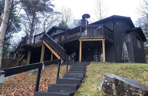 Gorgeous Muskoka Dream Cottage! In the heart of Muskoka Lakes, this luxurious cottage for friends, family or both provides a spa feeling, combined with country flair. Driving through the wooded driveway gives you a complete sense of relaxation…even before you jump into our hot tub with a view of the Lake. All day sun exposure and captivating sunsets make this a distinctive and unique rental. The luxurious main floor master, living room with fireplace, Hot Tub (Seasonal - closed November to March) and new deck all display lake views. We have tons of brand new deck furniture as well. Games room is awesome too! Come enjoy our prime located Muskoka Lakes cottage. Winters are wonderful too with lots of fun activities.