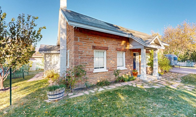 Nestled in the picturesque Heber Valley, The Stone Haus is a charming 1860's historical home that has been meticulously restored to offer a unique and unforgettable getaway experience. With its thick red sandstone walls, leaded glass windows, and lush landscaping, this property exudes old-world pioneer charm while providing all the modern comforts you need for a relaxing stay.