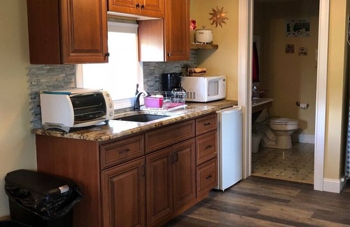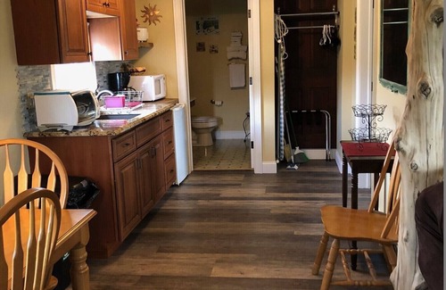 We also have one private suite (room 12) - there is a living room (with queen size pull-out couch), dining area, kitchenette (with refrigerator, toaster oven, and microwave), bedroom with queen size bed (equipped with memory foam), cable tv, DVD player, iron, ironing board, hairdryer, and large bath.