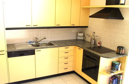 Modern furniture. Groundfloor: Entrance. Large living room with table, seat corner, wireless internet, exit on covered seat and the pool. Kitchen open to living room, with modern cooking combination, electric stove, dishwasher. 1 room with double bed, swisscom-tv. Shower/toilet. 1st floor: 2 bedrooms with 1 bed each and exit on balcony. 1 bedroom with double bed. Bath/toilet. (NL-00003903)