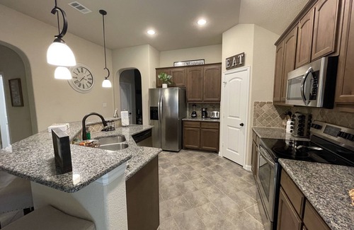 Cozy beautiful 4 bedroom home located in Ennis, Texas. Comfortable beds and peaceful backyard. Easy access to highway. 1.3 miles away from Ennis Texas, and only 35 miles away from Downtown Dallas. Fully equipped kitchen with a perfect coffee station. Outdoor dining area. Keypad self check into home with door code . Pet friendly with a small kennel.