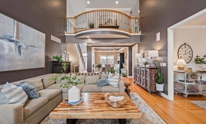 The huge Great Room w/ soaring ceilings are breath taking especially from the Juliette Balcony! The lower level is huge w/ an enormous TV area, pull out couch and full bathroom.