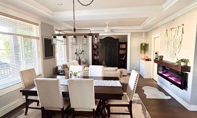 Main floor has two living areas with large flat screens and open concept kitchen. Lots of parking and outdoor entertaining area with BBQ and hot tub! You will be very comfortable and happy with your stay here. This is one of the few places where dogs are welcome! Parks, trails and the great outdoors surround us (including dog parks close by). NO PARTIES....PLEASE DO NOT BOOK AS THIS WILL NOT BE ALLOWED.