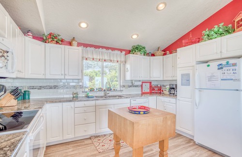 Spend some perfect family vacation time at the delightful Captain Jack’s in Newport’s quiet South Beach neighborhood. This oceanfront two-level home features pretty furnishings on the upper-level living area and a choice bunk-room for the kids on the lower level, complete with its own TV/VCR and collection of books and games. You’ll find the upper level offers you everything you need for a self-sufficient stay, from its fully equipped kitchen, floor to ceiling windows with panoramic views of the Pacific, telescope, leather couches and a large flat-screen. The oceanfront deck has built in seating so everyone can enjoy time outdoors scanning the horizon for whales or watching a spectacular sunset. You’ll love the comfortable decor designed to make you feel at home on your holiday. South Beach puts you minutes away from the Oregon Coast Aquarium, Hatfield Marine Science Center, Aquarium Village, Newport Bayfront and Rogue Brewery. It’s also an easy drive south to the towns of Seal Rock, Waldport and Yachats and some of the finest cliff-top scenery on the coast. Climb on board Captain Jack’s and enjoy a wonderful oceanfront getaway!