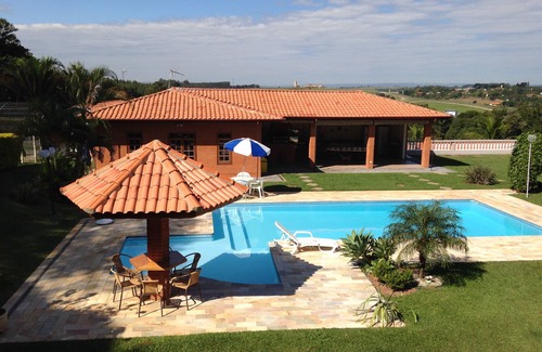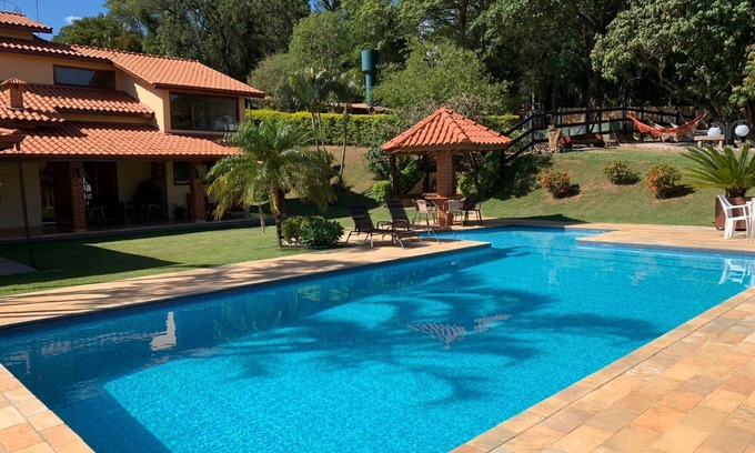 Farm for events, weekends and holidays. There are 6,000 m² of green area with complete leisure space including adult and children's pool with waterfall, barbecue with wood stove, games room, flirt, soccer field and playground.