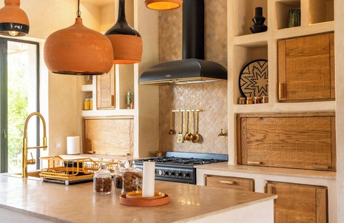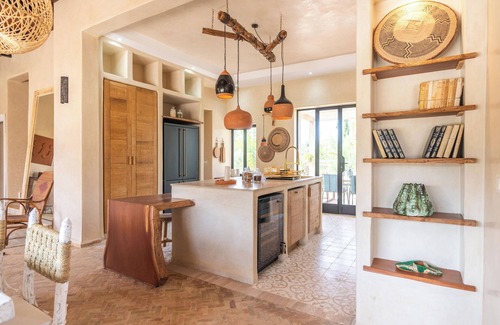Welcome to Villa Bismelah located 15 mins from the Medina and 5 mins from charming ghouza. This extremely private luxury villa features a back kitchen for the staff to prepare meals, a brand new front kitchen for the guests to enjoy as well as an outdoor kitchen complete with a wood fired pizza oven. You can have your meals in our large dining room enjoying the few through a picture window, off the back of the kitchen in the garden under the pergola or in the pool side dining area.