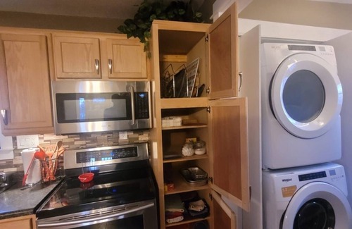 This 2-bedroom, 1-bathroom rental features a living room, a BBQ grill, a fireplace, and air conditioning. Bathroom amenities include a hair dryer, towels, and toilet paper. The kitchen is equipped with an oven, a stovetop, and a refrigerator, as well as a coffee maker, a microwave, and cookware. And because there's a washer and dryer, you can go a bit lighter on your packing.