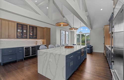 The sunny spacious open living area has cathedral ceiling, 60" Flat-Screen and Foosball gaming table. Stunning waterside deck that overlooks the harbor. A gourmet kitchen with high ceilings, quartz countertops, stainless appliances, Sub Zero refrigerator and opens to walk out deck. A breakfast nook and a stylish dining room with seating for 8 or more guest. The Master Bedroom suite has a King Bed, water views, a sitting room with full wet bar, and the master bath features a tub and sauna. The lower level has a separate entrance, open living, flat-screen, large bedroom, full bath and laundry room with newer washer/dryer. Outside, you'll find a patio with a heated inground pool and hot tub. This private complex offers nature landscaping with a curved driveway, 5 parking spots and 2 car garage.