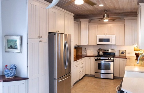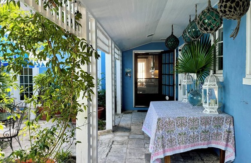 The Blue Ruin is well situated right in Dunmore Town with incredible views of the water, and includes 4 charming bedrooms, each with a newly renovated private bath. Nestled into lush vegetation at the edge of the bay it offers complete privacy while being very close to several of the islands best restaurants. The property also include the islands first saltwater pool, a relaxing pool deck with harbor views and a private dock that comes with two kayaks for your use as well as a fun new swings that hang over the water off the dock.