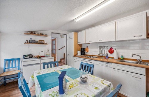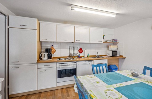Inside you will find a fully equipped fitted kitchen with dishwasher, toaster, egg cooker, electric cooker, microwave, fridge, radio and a cosy table with four chairs. An inviting living room with a sofa bed, a couch, a TV armchair, a dining table with four chairs, satellite TV and WLAN Internet access leaves nothing to be desired. The bathroom is equipped with a shower, WC and an anteroom with washing machine. There is also a large master bedroom and a child-friendly room, both lovingly furnished.