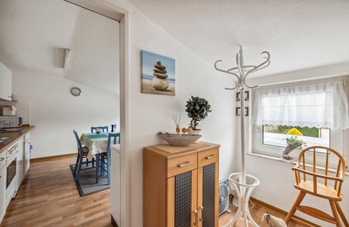 Discover an idyllic holiday home in Hage, Berumbur - a perfect escape from everyday life. This spacious holiday flat of approx. 70 sqm is located on the first floor of a quiet house and, although accessible via a steep staircase, is a real treasure. Directly opposite the Hage Berum holiday park, you can expect not only a picturesque view but also proximity to the nearest restaurant.